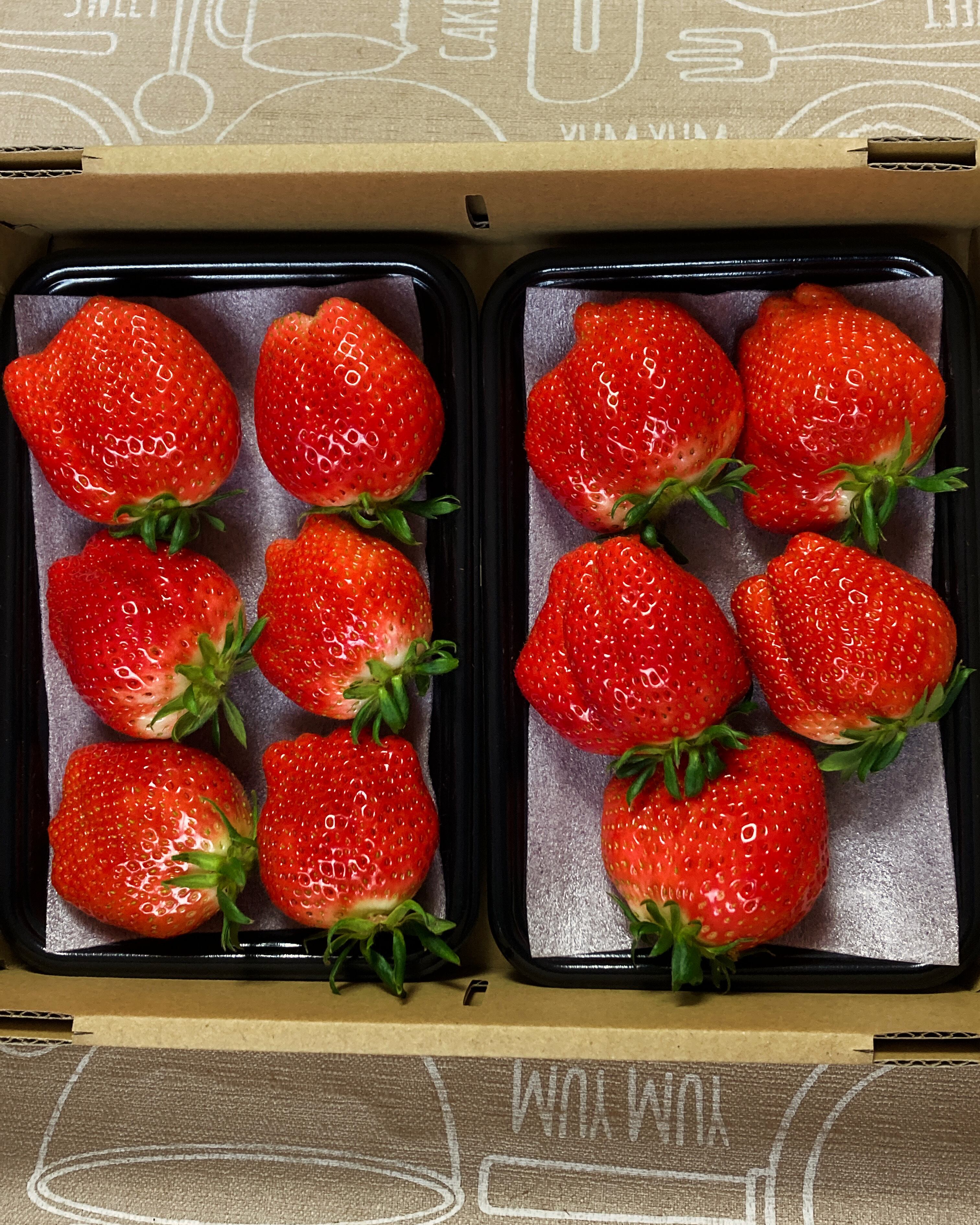 群馬県オリジナル品種[やよいひめ]を、不揃いですが、とにかく大粒のものを平詰めにしました。1箱2パック入りで1パックに5粒〜8粒入ります。収穫のタイミングで大きさが変わります。